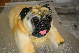 Pugs obviously have a lot of wrinkles, so I put small rolls of fondant on the areas where the skin would be protruding on the dog.
